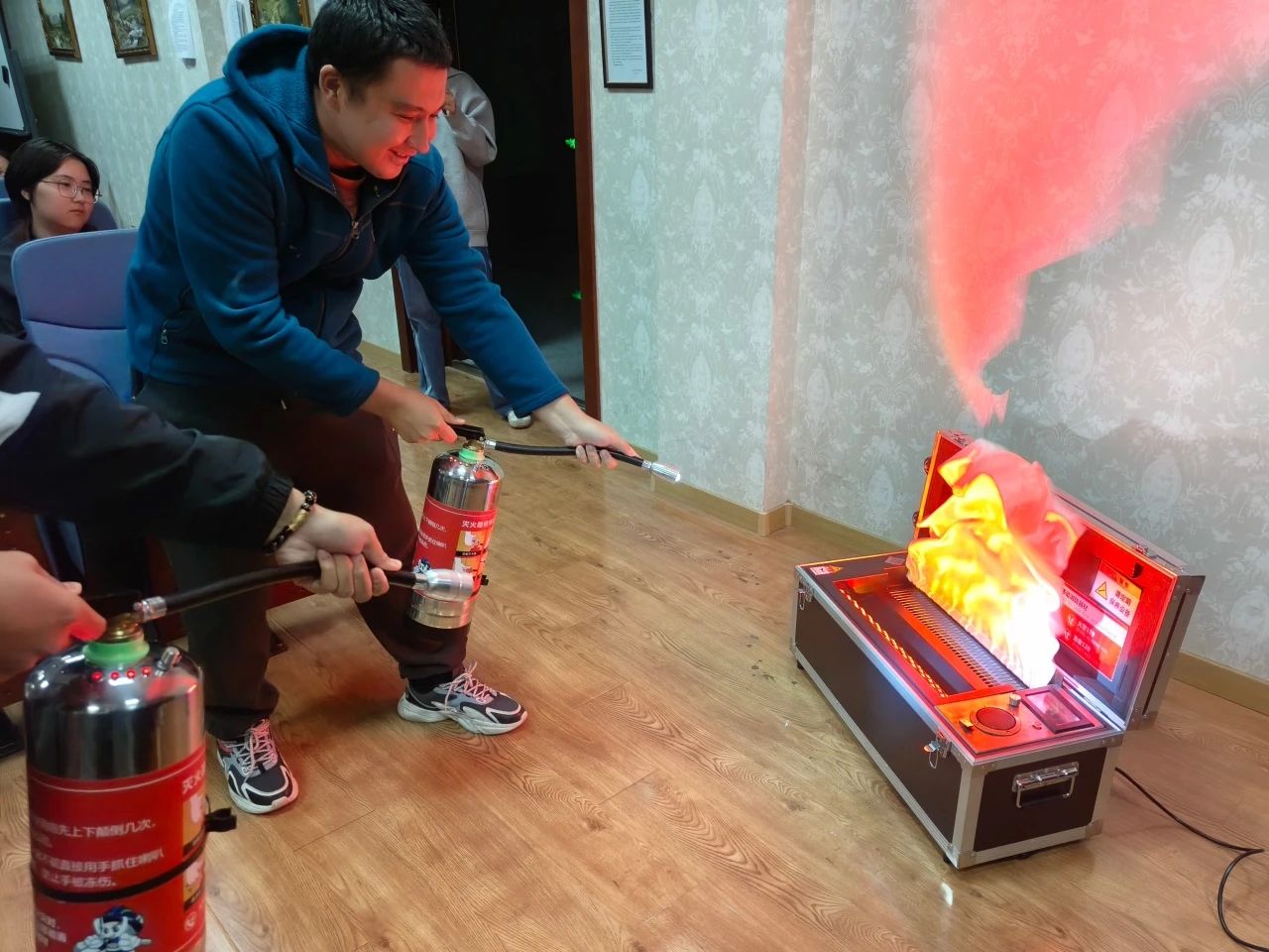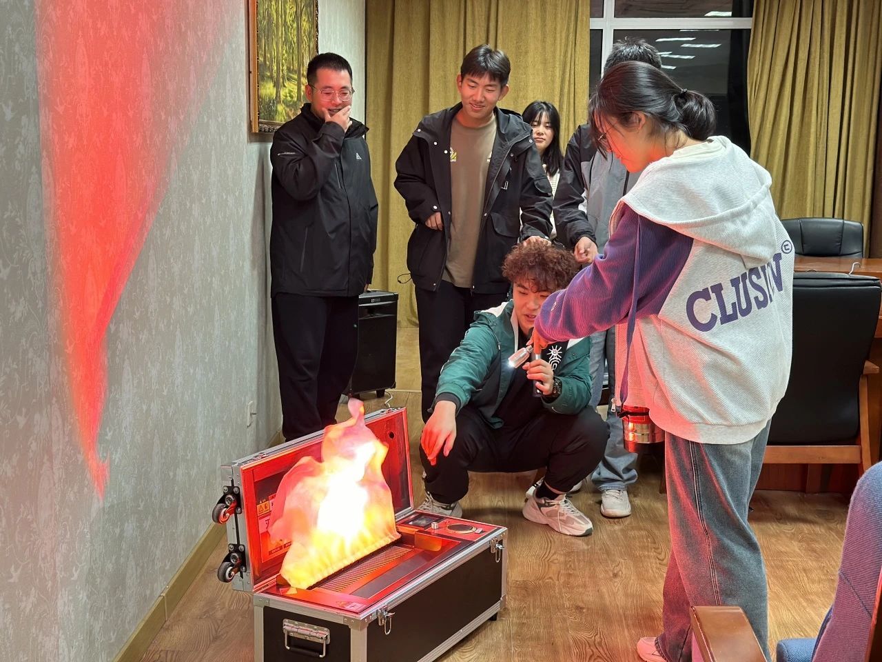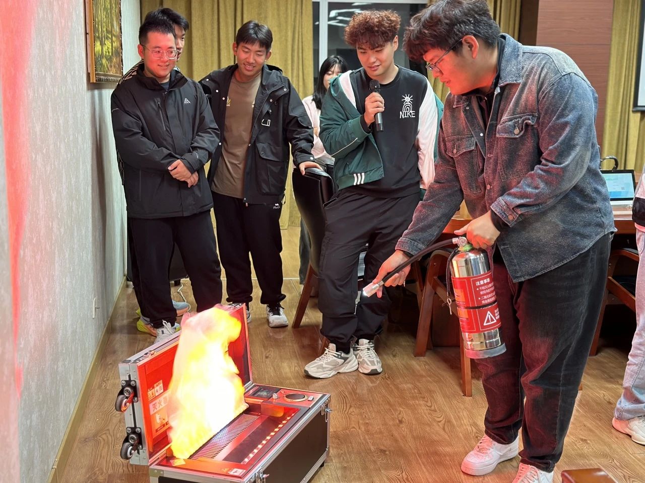 接着学生代表为同学们细致讲解了灭火器的使用方法并邀请现场同学上前体验操作灭火器,正确演示了灭火器的操作方法,让大家对如何使用灭火器有了进一步了解。