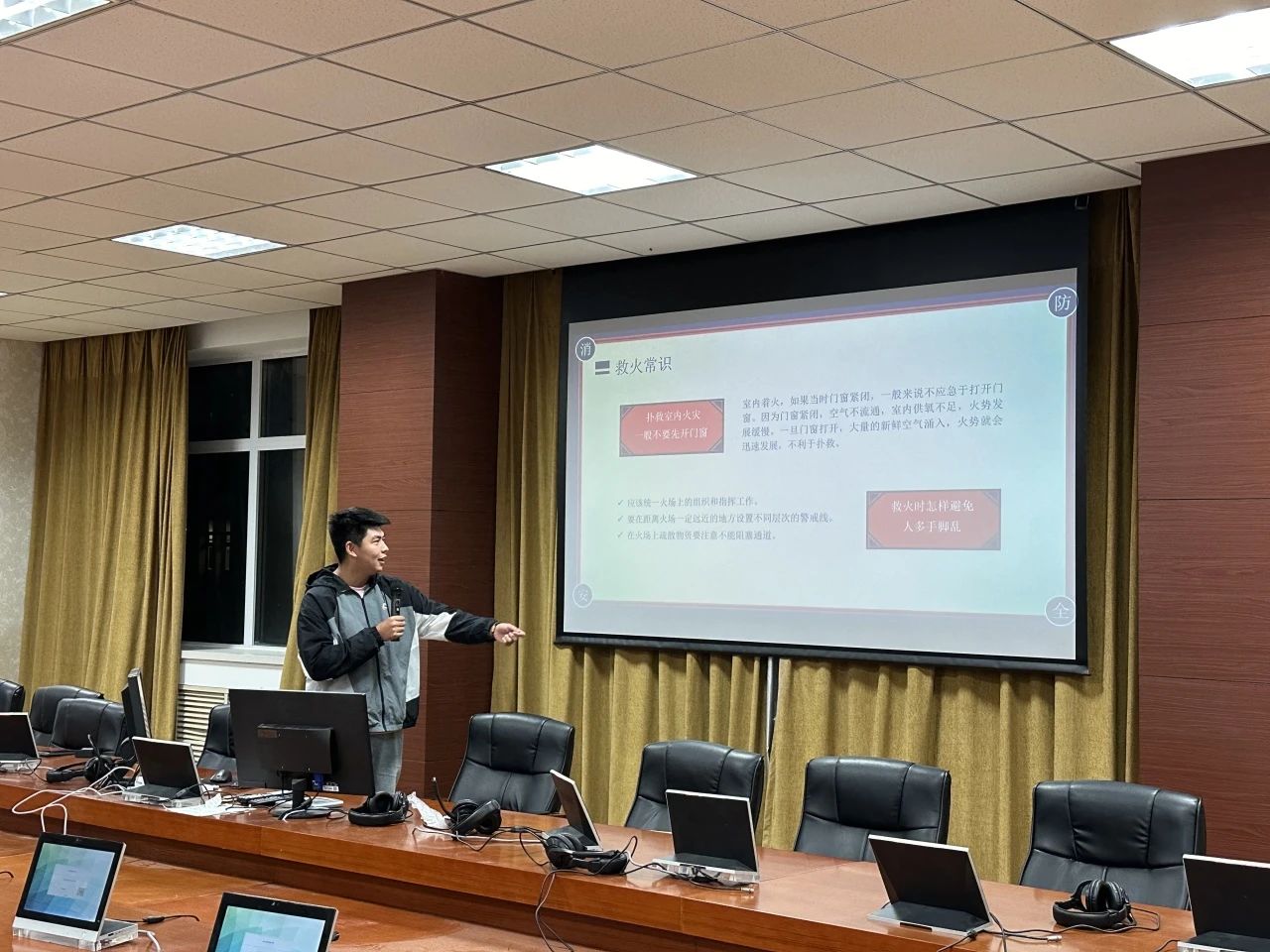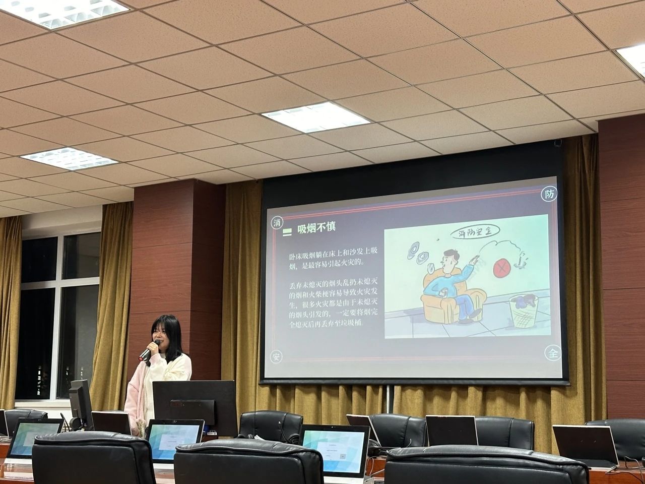 在励学楼口译实验室举办了学生消防安全教育讲座,学生干部为大家讲解了需要掌握的消防安全知识和火场逃生方法,强调了演练中应该注意的秩序与安全问题,并集体观看了“寝室火灾注意事项及疏散逃生视频”,提高了寝室火灾防范及应对意识。