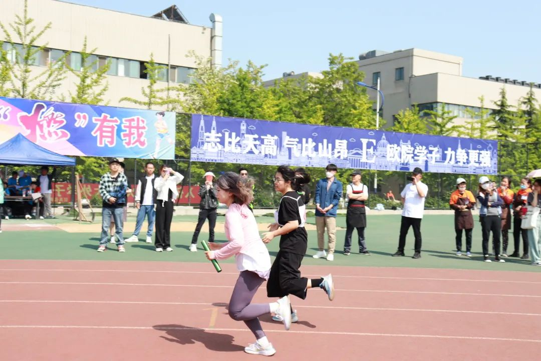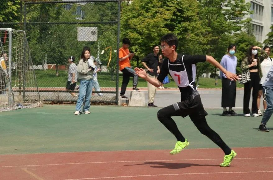 的运动健儿们奋勇争先,展现着势不可挡的勇气,空掷一切的豪气,划破长空的浩然之气。观众席上响彻着铿锵有力的击鼓声,同学们的加油呐喊声,为运动场上的运动健儿注入了勇气与力量。同学们为学院参赛的教师们加油鼓劲,教师们在赛场上奋力拼搏。