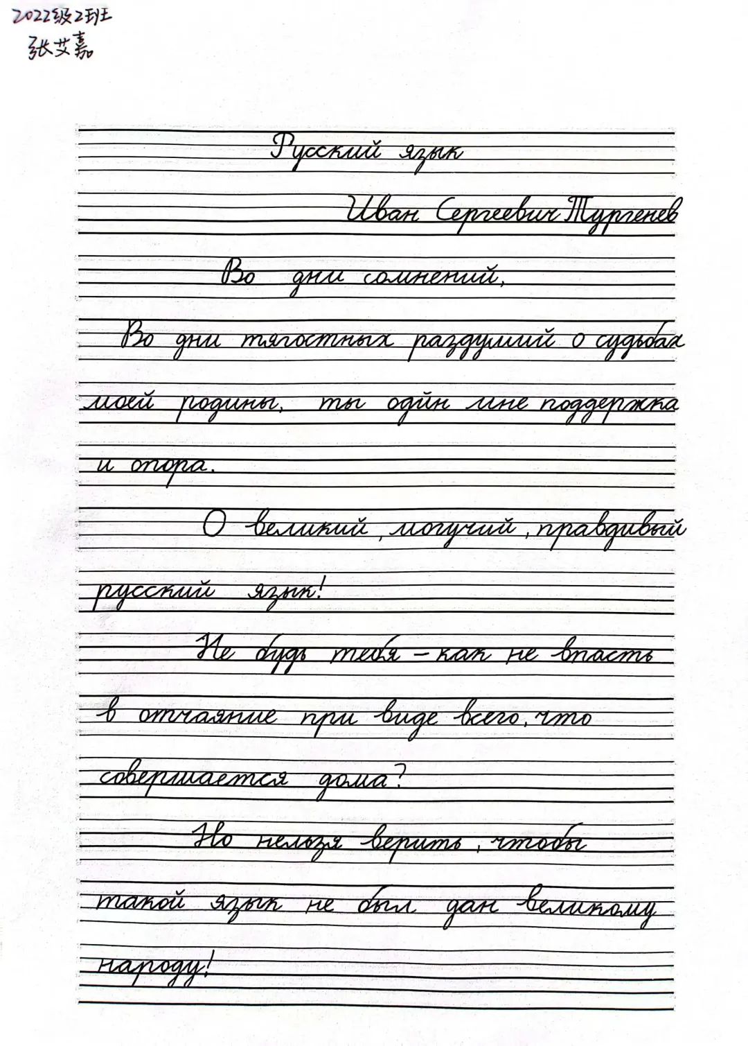 本次比赛的选文优美诗意,参赛选手们用不同的俄语字体,以不同的书法风格书写俄语,让俄语之美跃然纸上。