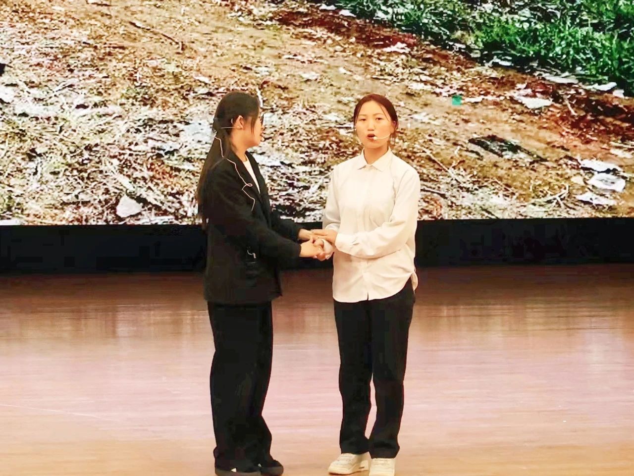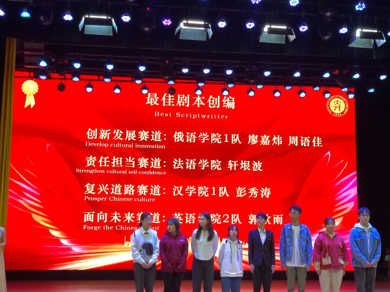 一队最终在创新发展赛道中获得团体一等奖,2022级廖嘉炜、周语佳获得最佳剧本创编奖,分团委书记王健老师获得最佳指导老师奖。