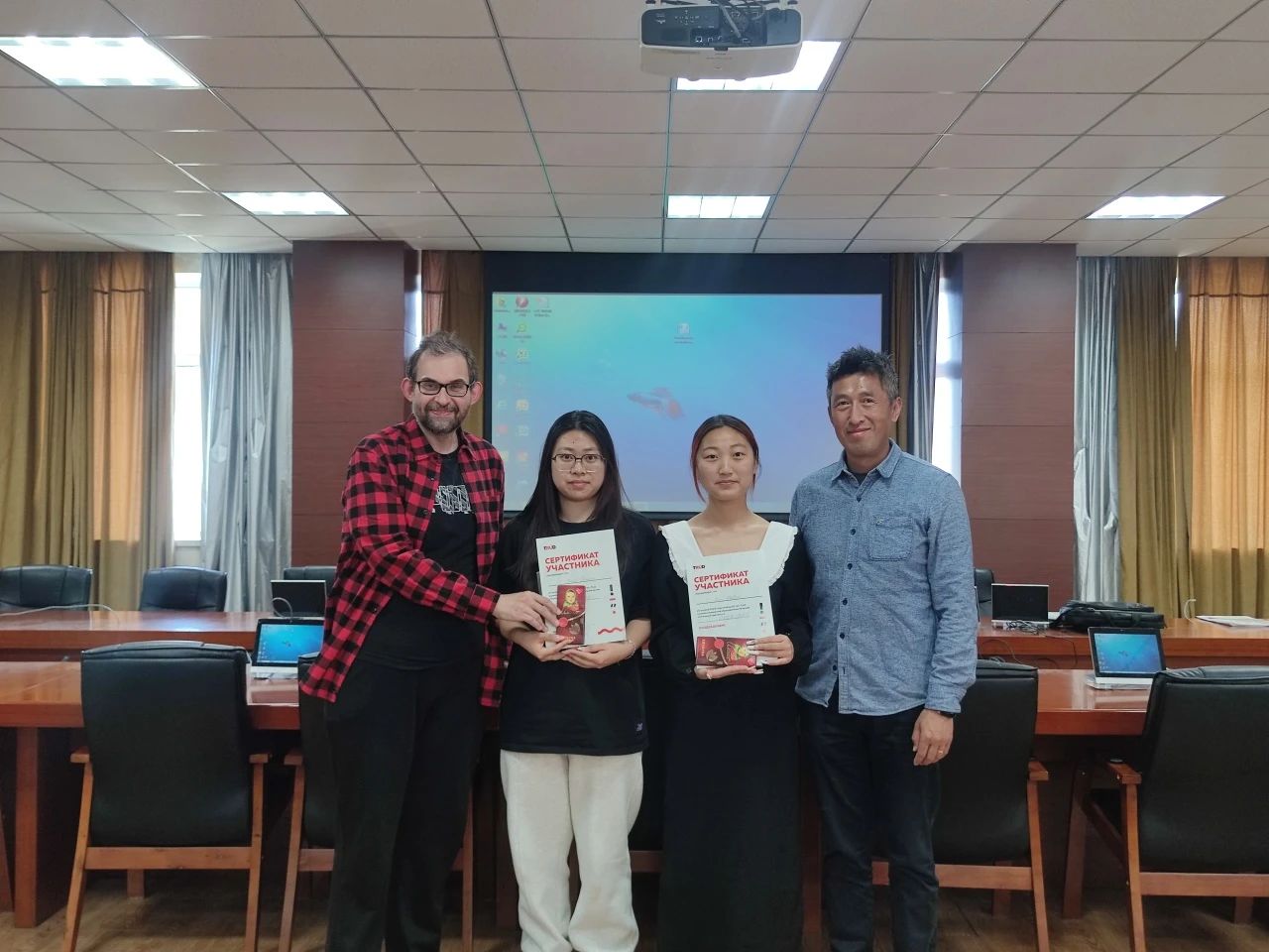 在颁奖仪式上,教研室主任杜洪军老师代表学院向所有积极参与此次活动的同学表达了感谢,并向获奖同学表示了祝贺,号召同学们要积极运用课堂上学到的知识,提高实践能力。亚历山大·博奇卡廖夫老师鼓励大家说:“我校同学在此次全民听写活动中的表现十分出色,充分证明了69书吧 的俄语教学的优秀质量。”